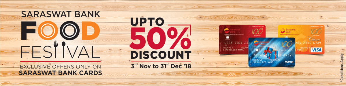 2. Offer available exclusively on Saraswat Bank Cards